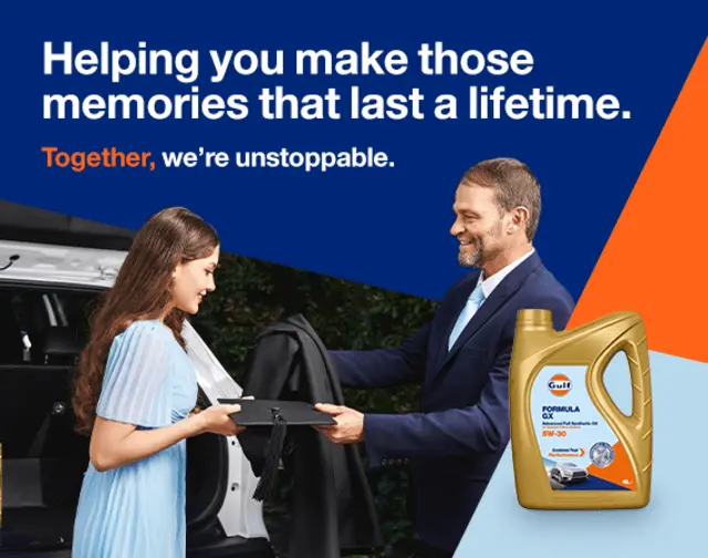 But our knowledge, knowhow and expertise can only go so far. For the ultimate reliability, you need to look after your car too. From regular checks like tyre pressures, oil level and coolant to keeping your car well maintained by following its set service schedule. Combine those steps with Gulf, and Together, we’re unstoppable.